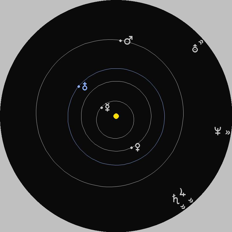 | f Merkur g Venus l Erde h Mars j Jupiter S Saturn A Uranus G Neptun |