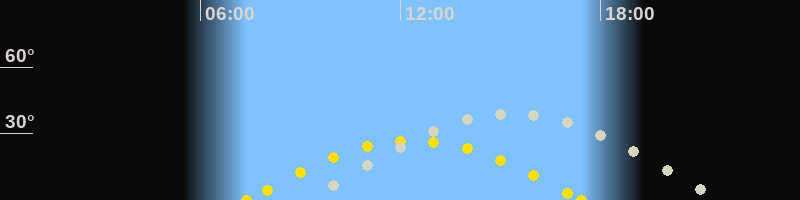 | Höchster Sonnenstand (Kulmination) | 12:24 Uhr (h = 26.8°) |