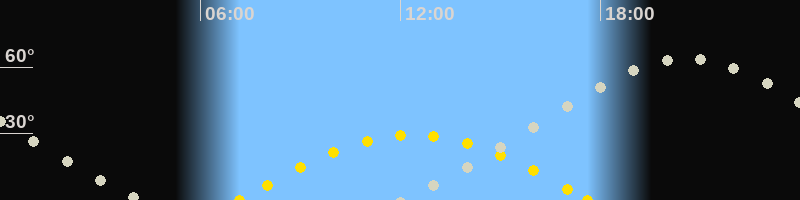 | Höchster Sonnenstand (Kulmination) | 12:23 Uhr (h = 29.3°) |