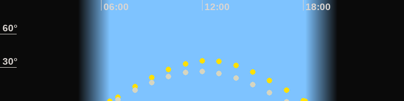 Höchster Stand (Kulmination)11:45 Uhr (h=26.3°)