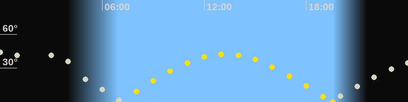 Höchster Sonnenstand (Kulmination)13:15 Uhr (h = 42.5°)