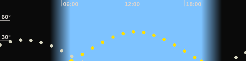 Höchster Sonnenstand (Kulmination)13:14 Uhr (h = 43.2°)