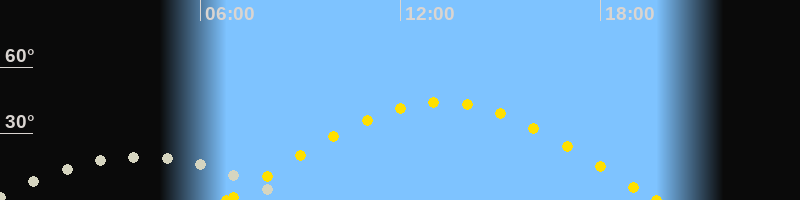| Sonnenaufgang | 06:47 Uhr im Osten (αAz = 82°) |