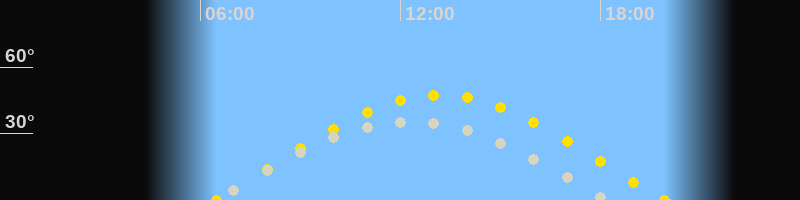 | Höchster Stand (Kulmination) | 12:09 Uhr (h=35°) |