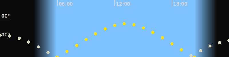 | Sonnenaufgang | 05:55 Uhr im Osten (αAz = 67.5°) |