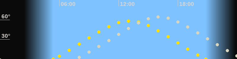 | Höchster Sonnenstand (Kulmination) | 13:06 Uhr (h = 58.3°) |