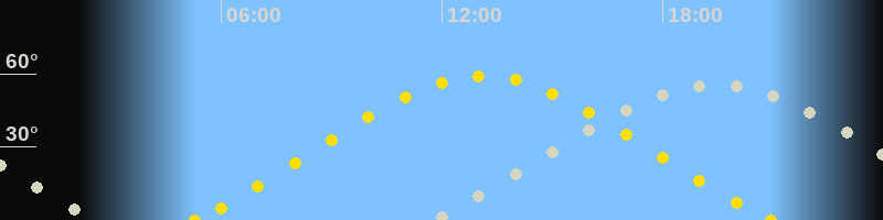 | Höchster Sonnenstand (Kulmination) | 13:06 Uhr (h = 59.2°) |