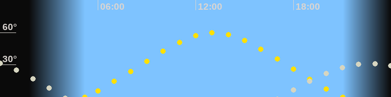 | Höchster Sonnenstand (Kulmination) | 13:07 Uhr (h = 60°) |