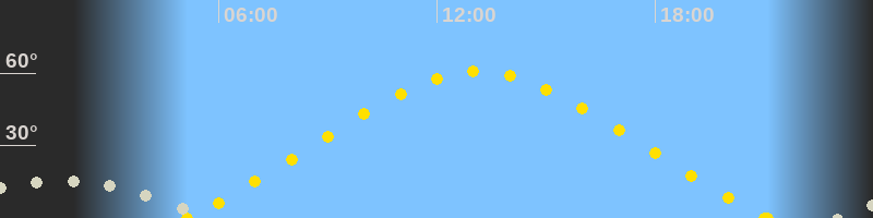 | Höchster Sonnenstand (Kulmination) | 13:07 Uhr (h = 60.7°) |