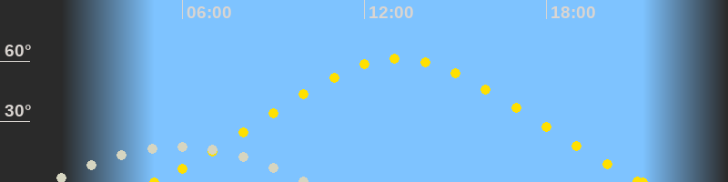 | Höchster Sonnenstand (Kulmination) | 13:08 Uhr (h = 61.3°) |