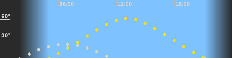 | Höchster Sonnenstand (Kulmination) | 13:08 Uhr (h = 61.4°) |