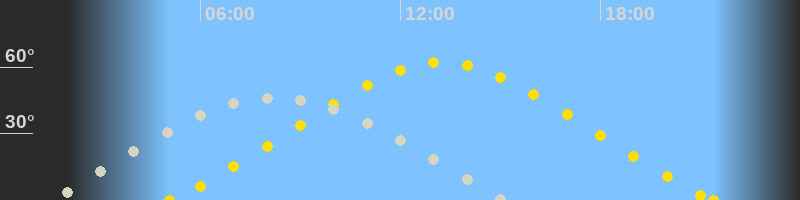 | Höchster Sonnenstand (Kulmination) | 13:14 Uhr (h = 62.2°) |