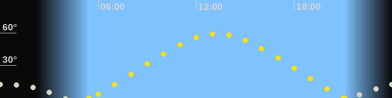 | Höchster Sonnenstand (Kulmination) | 13:16 Uhr (h = 59.2°) |