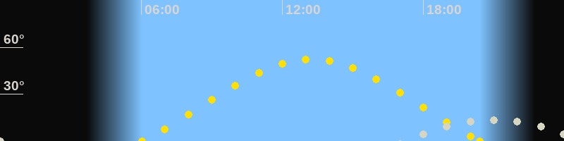 | Sonnenaufgang | 06:02 Uhr im Osten (αAz = 67.9°) |