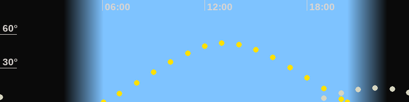 | Sonnenaufgang | 06:04 Uhr im Osten (αAz = 68.4°) |