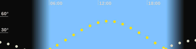 | Sonnenaufgang | 06:07 Uhr im Osten (αAz = 69.5°) |