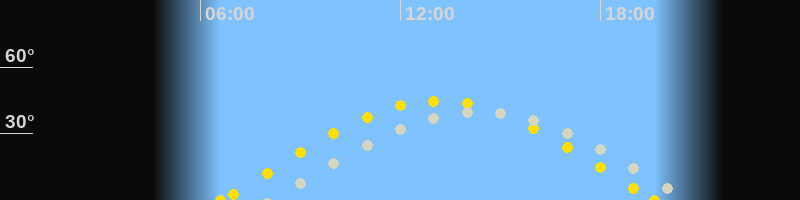 | Sonnenaufgang | 06:36 Uhr im Osten (αAz = 80.4°) |