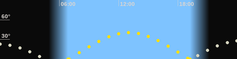| Sonnenaufgang | 06:53 Uhr im Osten (αAz = 87.1°) |