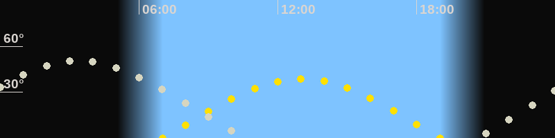 | Sonnenaufgang | 07:01 Uhr im Osten (αAz = 90.2°) |