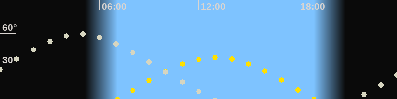 | Sonnenaufgang | 07:04 Uhr im Osten (αAz = 91.4°) |