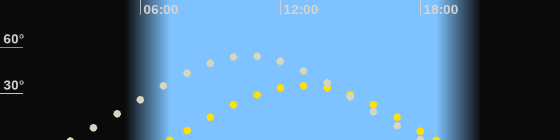| Sonnenaufgang | 07:15 Uhr im Osten (αAz = 95.7°) |