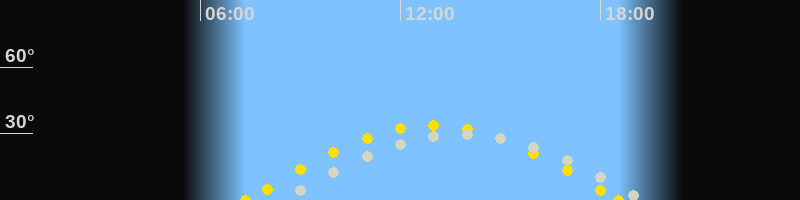 | Höchster Stand (Kulmination) | 13:54 Uhr (h=30.2°) |