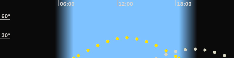 | Monduntergang | 23:36 Uhr im Südwesten (αAz = 228.7°) |
