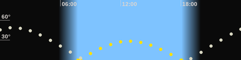 | Höchster Sonnenstand (Kulmination) | 12:54 Uhr (h = 28.4°) |