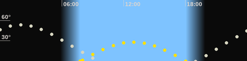| Höchster Sonnenstand (Kulmination) | 12:54 Uhr (h = 28°) |