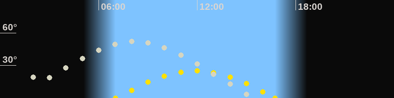 | Höchster Sonnenstand (Kulmination) | 11:53 Uhr (h = 25°) |