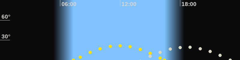 | Höchster Stand (Kulmination) | 18:30 Uhr (h=19.3°) |