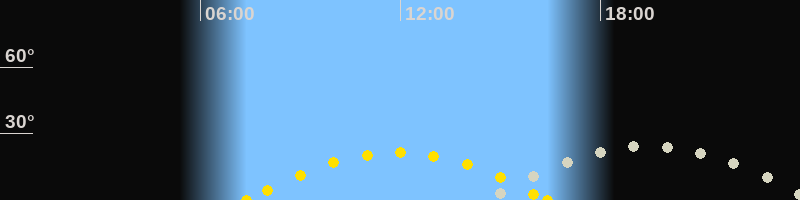 | Höchster Sonnenstand (Kulmination) | 11:54 Uhr (h = 21.4°) |