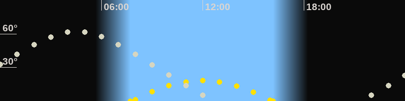 | Höchster Sonnenstand (Kulmination) | 11:57 Uhr (h = 18.4°) |
