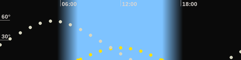 | Höchster Sonnenstand (Kulmination) | 11:57 Uhr (h = 18.2°) |
