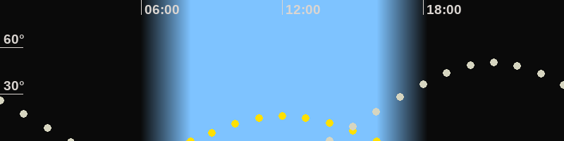 | Höchster Sonnenstand (Kulmination) | 12:05 Uhr (h = 16°) |