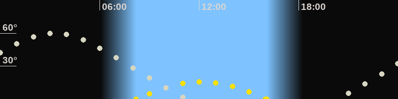 | Höchster Sonnenstand (Kulmination) | 12:09 Uhr (h = 15.9°) |