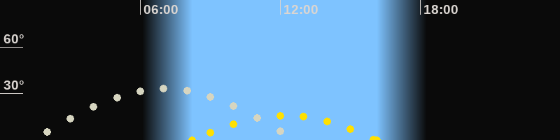 | Höchster Stand (Kulmination) | 07:05 Uhr (h=33.3°) |