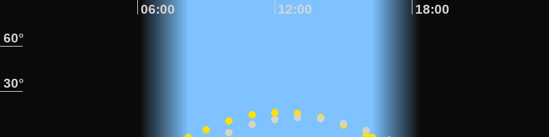 | Höchster Sonnenstand (Kulmination) | 12:14 Uhr (h = 16.5°) |
