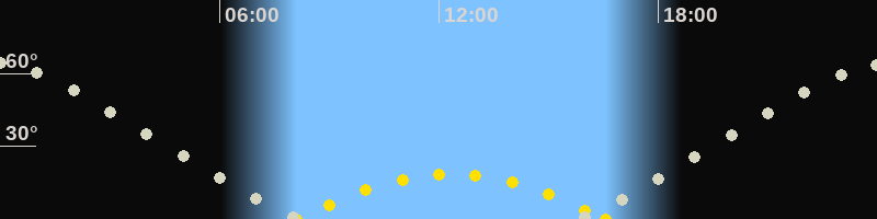 | Höchster Sonnenstand (Kulmination) | 12:20 Uhr (h = 18.6°) |