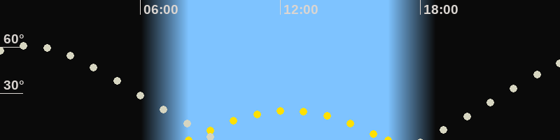 | Höchster Sonnenstand (Kulmination) | 12:20 Uhr (h = 19°) |