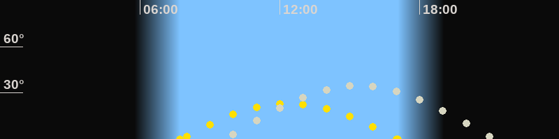 | Höchster Sonnenstand (Kulmination) | 12:24 Uhr (h = 23.1°) |
