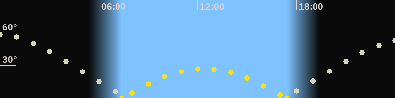 | Höchster Sonnenstand (Kulmination) | 12:24 Uhr (h = 27°) |