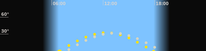 Höchster Sonnenstand (Kulmination)12:22 Uhr (h = 32.6°)