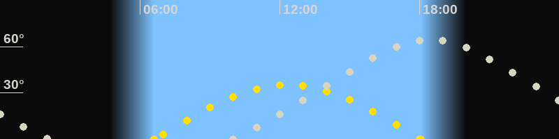 Höchster Stand (Kulmination)18:25 Uhr (h=64.6°)