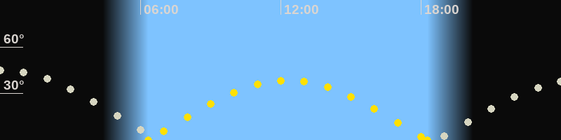 Höchster Sonnenstand (Kulmination)12:18 Uhr (h = 38.4°)