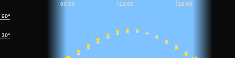 | Höchster Sonnenstand (Kulmination) | 13:14 Uhr (h = 43.9°) |