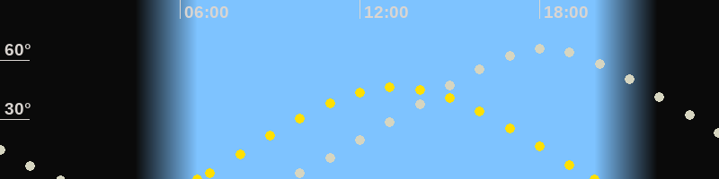 | Sonnenaufgang | 06:35 Uhr im Osten (αAz = 78.5°) |