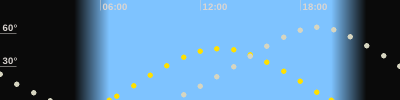| Sonnenaufgang | 06:32 Uhr im Osten (αAz = 77.9°) |