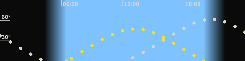 | Höchster Sonnenstand (Kulmination) | 13:11 Uhr (h = 47.3°) |