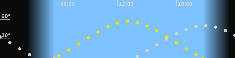 | Mondaufgang | 13:30 Uhr im Osten (αAz = 68.3°) |